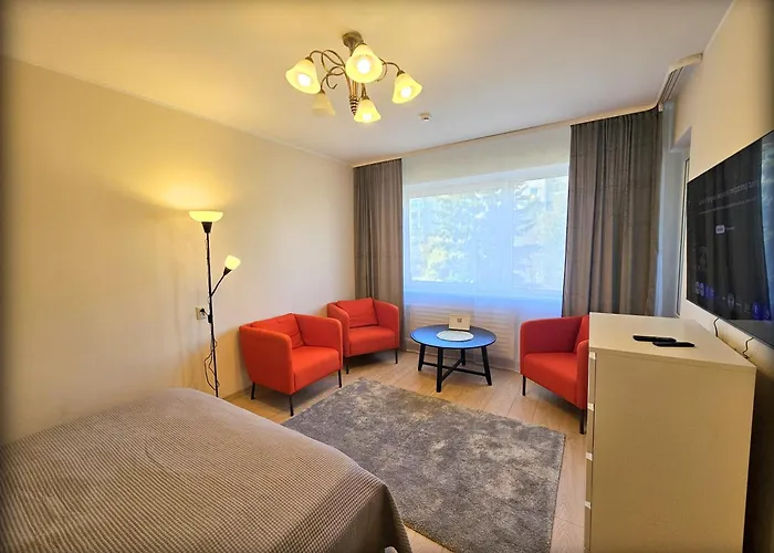 Den 36 m² stora lägenheten ligger i distriktet Pasilaiciai och ungefär 15 minuters bilfärd från Museet för folkmordsoffren. Gästerna kommer att bo 4 km från TV-tornet i Vilnius.